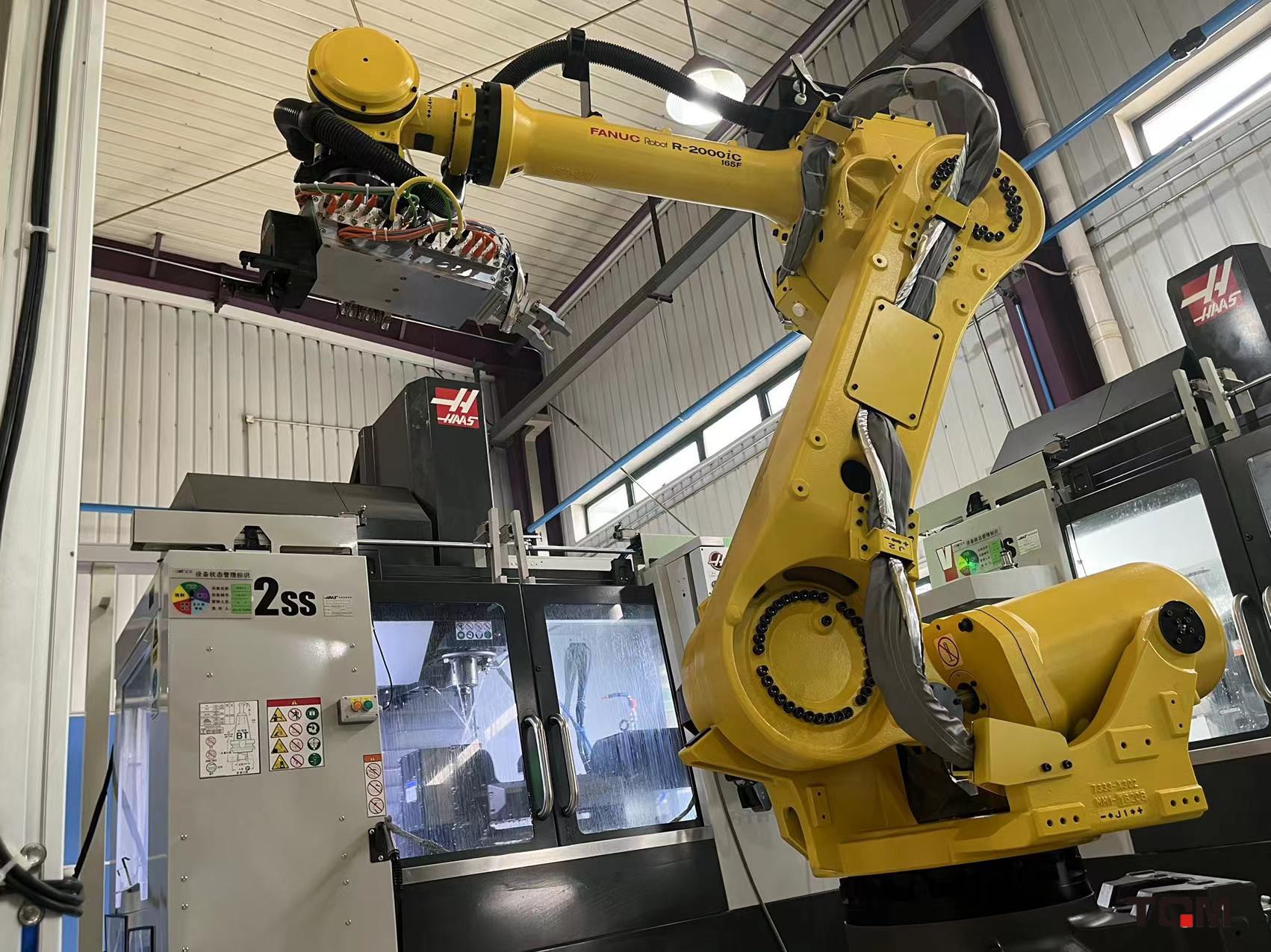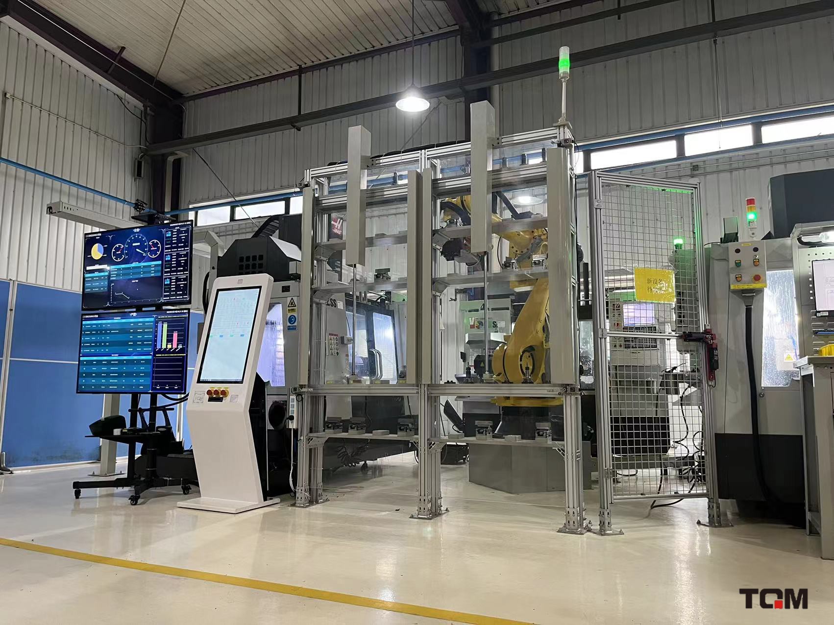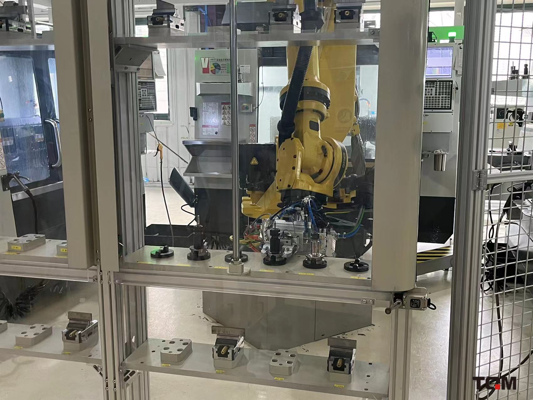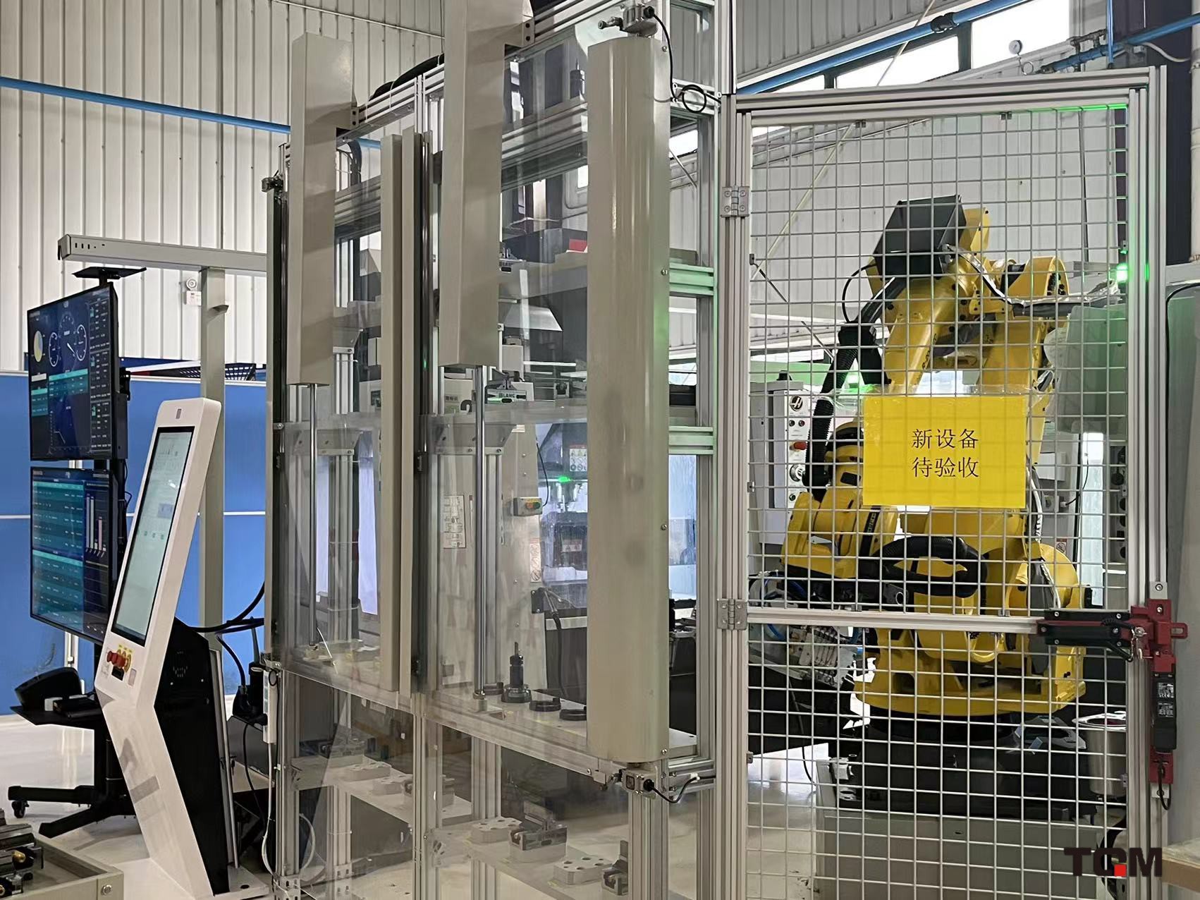 智能柔性生产单元,利用三台机床及机械臂设计研发为岛式生产单元,自动调度智能生产单元内进行生产行,机床稼动率达到96%以上。